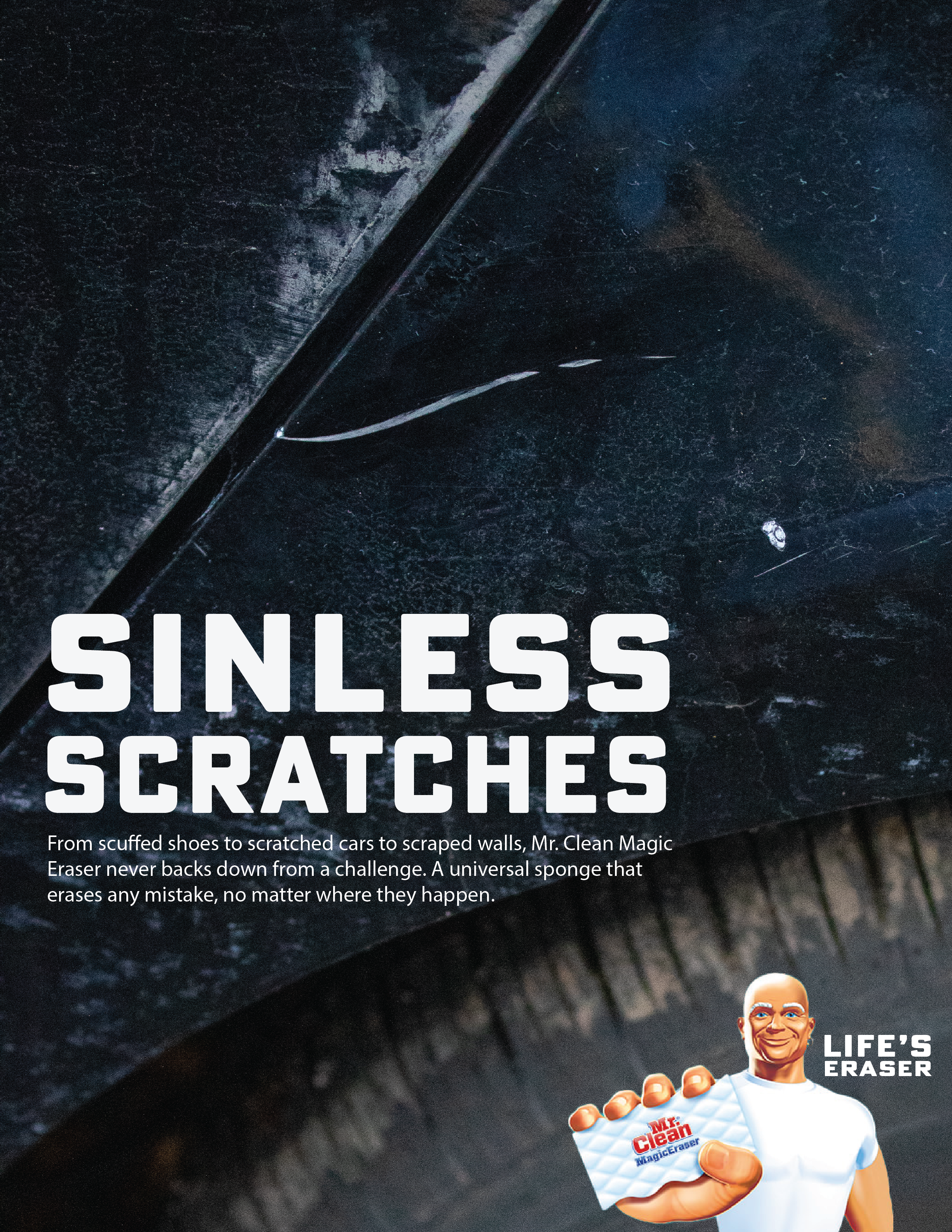Mr. Clean’s Magic Eraser can be “life’s eraser,” getting rid of the scratches and scuffs that happen from the everyday grind of life. Its versatility makes Mr. Clean’s Magic Eraser a necessity for you to have in your back pocket at all times when life gets messy.